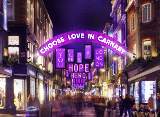 沿着摄政街的另一条支路可以来到卡纳比街(Carnaby Street)。卡纳比街位于伦敦SOHO街区,有着充满活力的夜生活娱乐圈。